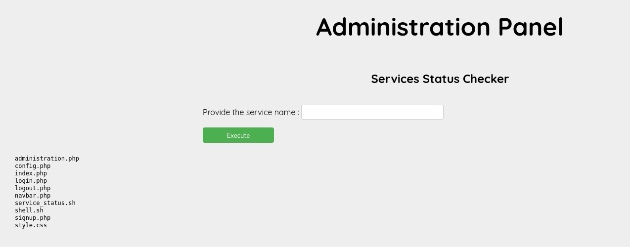 I experimented with the service status checker and found that it’s vulnerable to command injection using ‘&&.’ So, what I did was I input these commands: