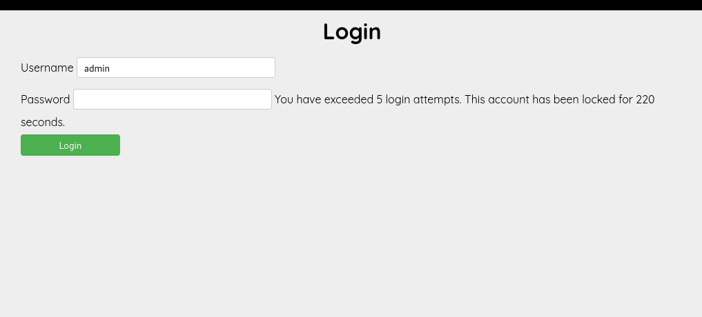 I tried to guess different password or default password for an admin and after 5 login attempts, I got this error message ‘You have exceeded 5 login attempts. This account has been locked for 300’. Next I proceed to register an account.
